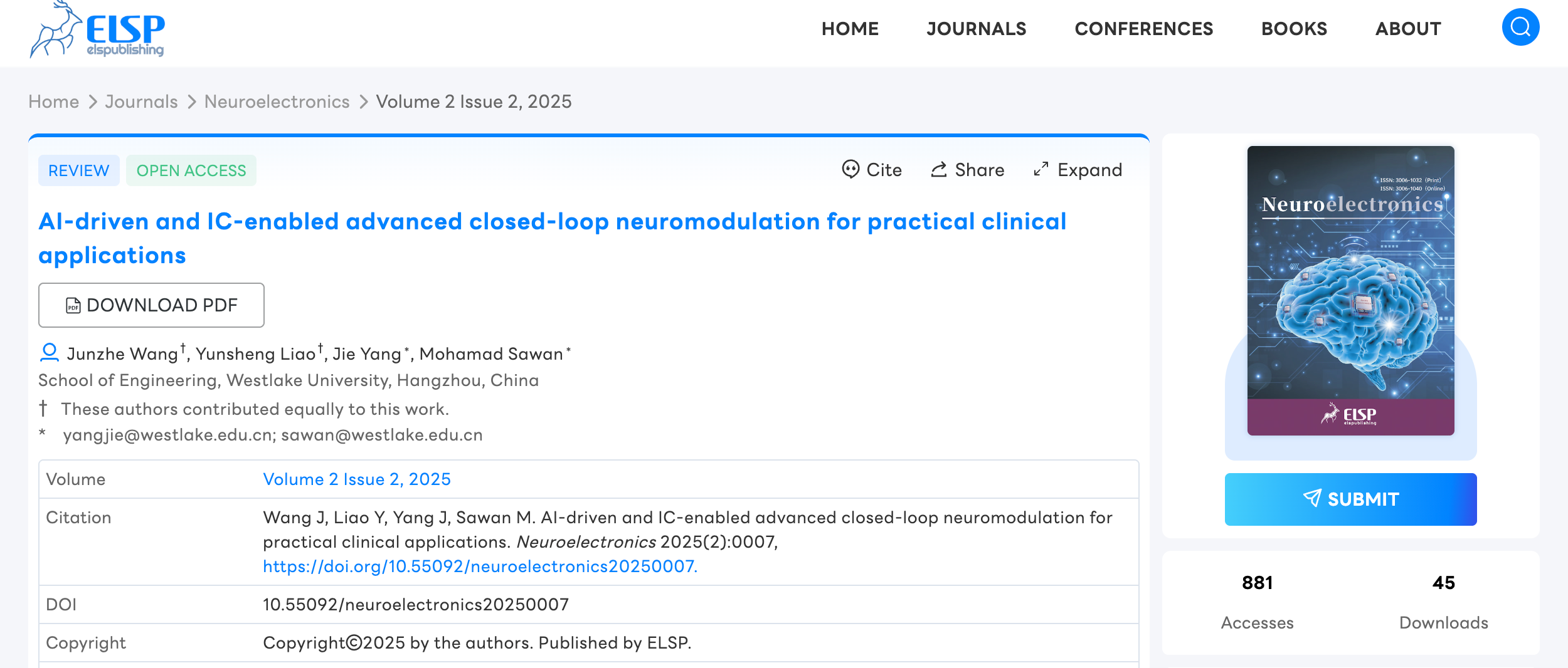 In this context, a review paper led by Chair Professor Mohamad Sawan’s research center, recently published in the emerging journal Neuroelectronics, aims to deliver a clinically oriented systematic review of the latest advances in AI-driven closed-loop neuromodulation algorithms and IC-enabled neural interface technologies. This work evaluates their effectiveness, limitations, and evolving trends within clinical practice while proposing a forward-looking roadmap that integrates AI and IC innovations to meet unmet clinical needs. Designed to serve as a valuable resource, this review aims to advance the research and application of intelligent neuroelectronic systems.
